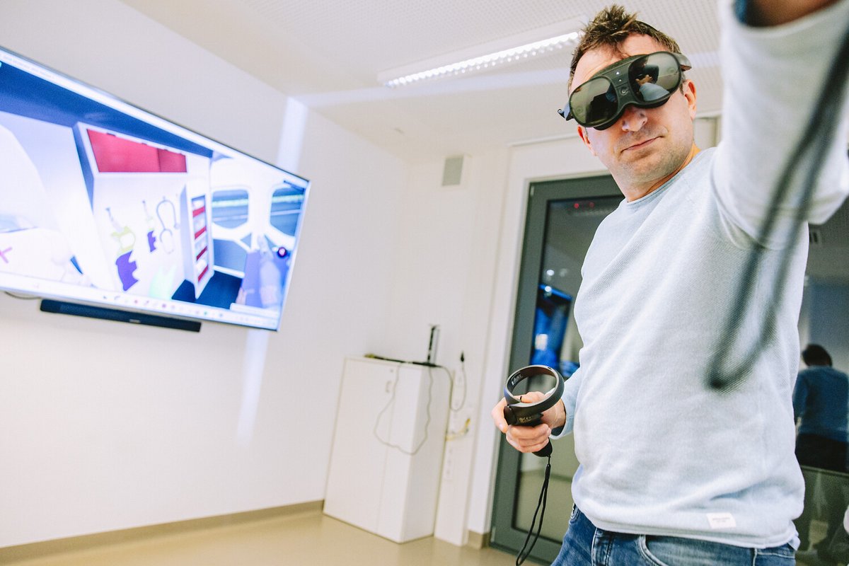 Für erfahrene und speziell zusatzqualifizierte Notärzte wird nun das Ausbildungsangebot für seltene Notfallszenarien durch Virtual Reality (VR) gezielt erweitert. Diese Technologie eröffnet zusätzliche Möglichkeiten, insbesondere seltene und komplexe Notfallszenarien immersiv abzubilden. Gemeinsam mit der StellDirVor GmbH entsteht eine interaktive, mehrspielerfähige Virtual-Reality-Trainingsumgebung. Ziel ist es, medizinische Fachkräfte noch intensiver auf kritische Situationen vorzubereiten und dabei insbesondere Teamarbeit unter realistischen Bedingungen zu trainieren.