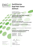 Erstzertifizierung: 19.11.2013. Letzte Rezertifizierung: 08.11.2022. Zertifikat gültig bis: 23.04.2026 - Zentrum für Kopf-Hals-Tumoren Klinikum Stuttgart