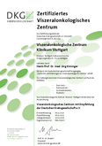 Erstzertifizierung: 23.10.2008. Letzte Rezertifizierung: 08.11.2022. Zertifikat gültig bis: 23.04.2026 - Pankreaskarzinomzentrum Klinikum Stuttgart